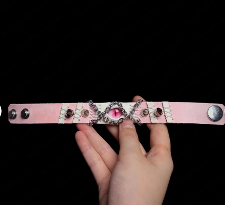 Pink Devil Eye Pastel Goth Leather Cuff – Spiked Chain Bracelet
