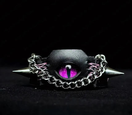Material: Black leather + alloy + blue demon eye centerpiece