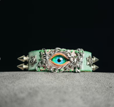 Design: Spiked leather cuff with demon eye centerpiece