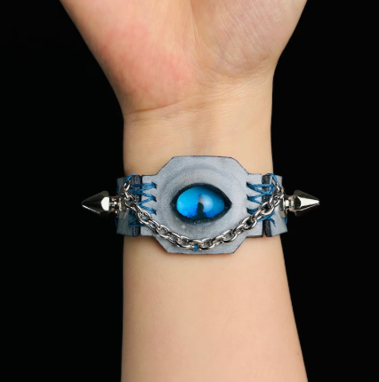 Absolutely love this wristband! The blue eye detail looks alive — gives a strong dark punk vibe. Heavy but comfortable to wear.