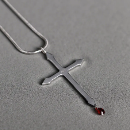 Perfect for men and women who love vampire aesthetics, dark fashion, or elegant statement jewelry, the Crimson Cross Necklace is more than an accessory—it’s a story of eternal allure.