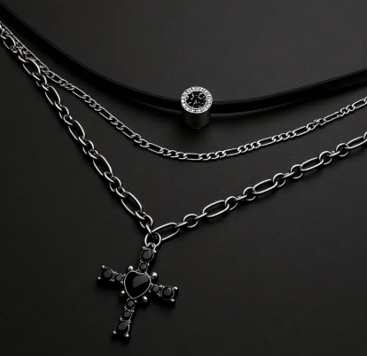 Perfect for gothic, punk, or alternative fashion lovers, this necklace adds a bold statement to any outfit — from night-out looks to everyday streetwear.