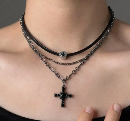 Crafted from premium faux leather and durable alloy, the necklace offers both comfort and long-lasting wear. Its layered design adds depth and sophistication, making it perfect for gothic fashion, E-girl aesthetics, cosplay, or statement streetwear.