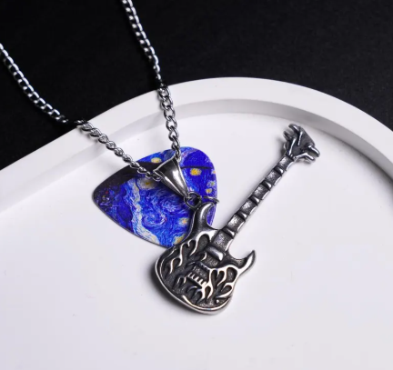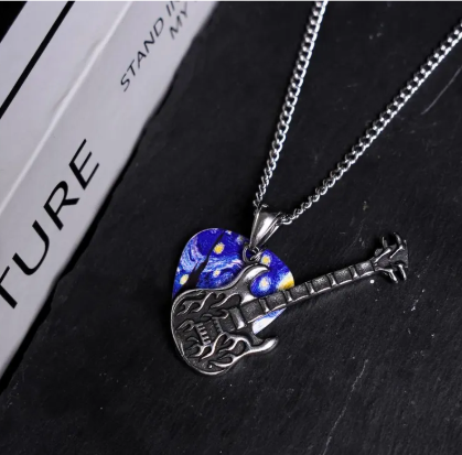 Starry Electric Guitar Pendant – Punk Rock Music Necklace
